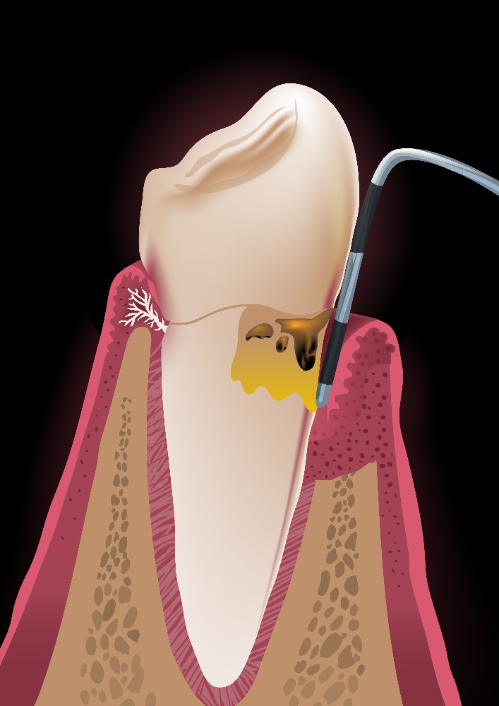 - sondovatelná hloubka dásňového žlábku se prohlubuje nad 6 mm